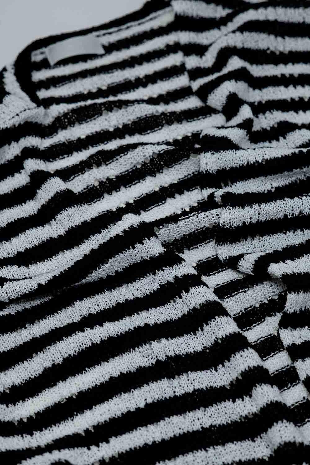 Black Boho Style Cardigan With Stripes Pointelle Knit and Fringe Details