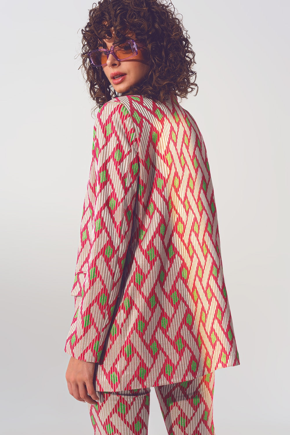Blazer in pink geometric print