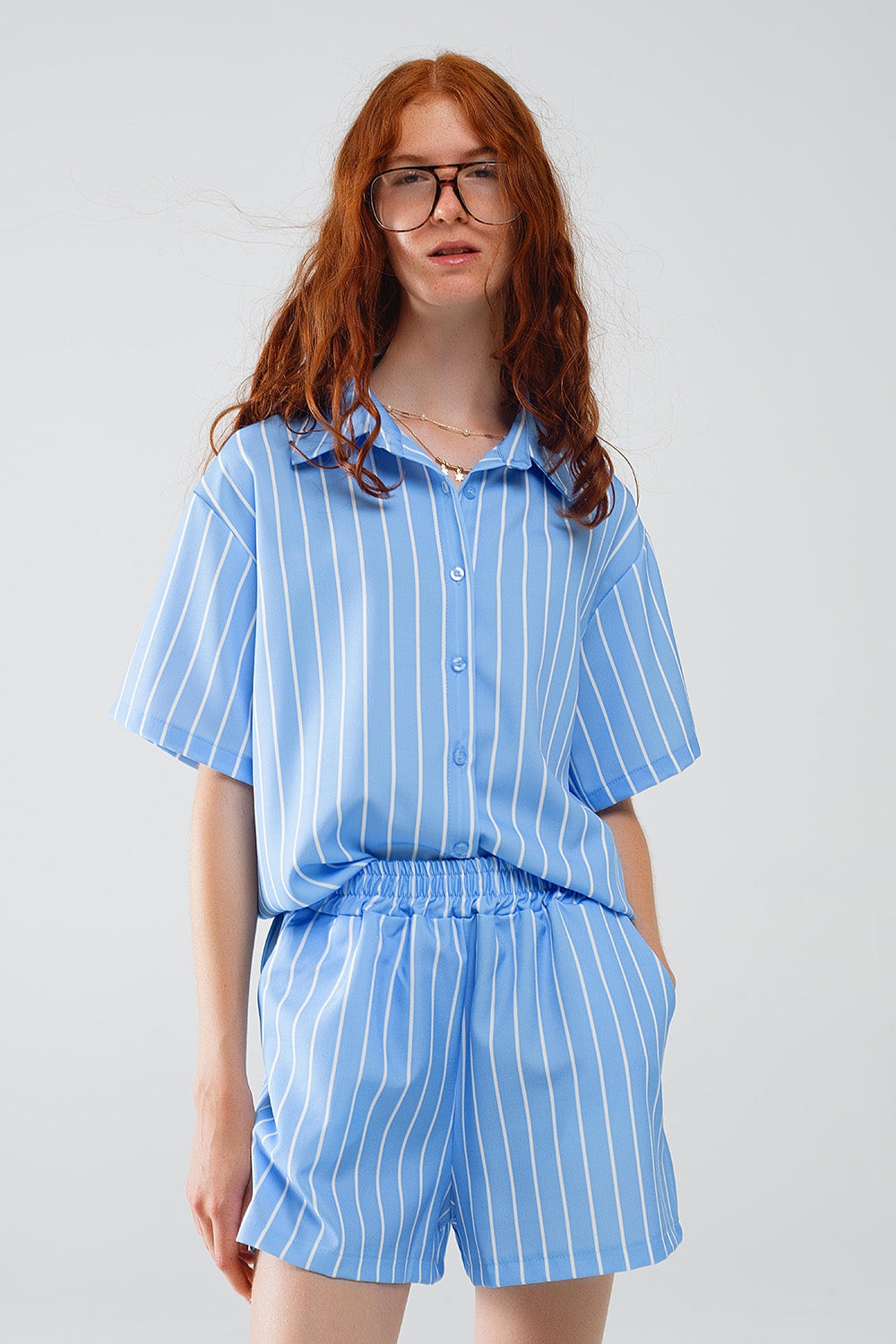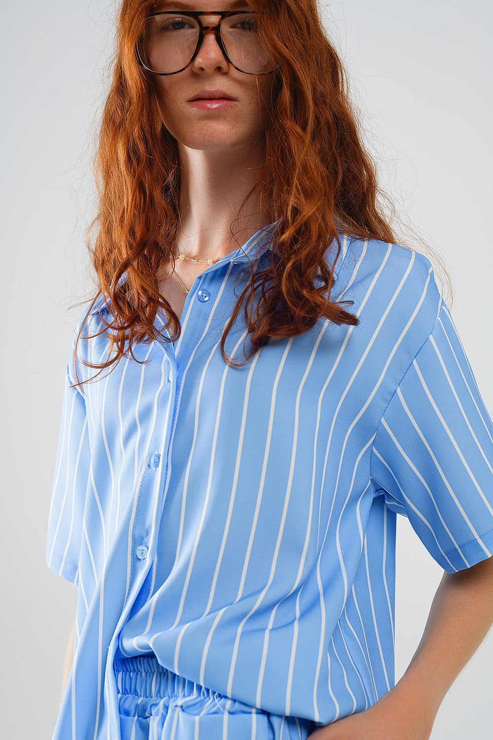 Subcategory: Shirts. Collar: Contrast collar. Sleeves: Short Sleeves. Print: Stripe design. Fit: Relaxed fit. Style: Casual. Fabric: Lightweight woven fabric . runs true to size. S.