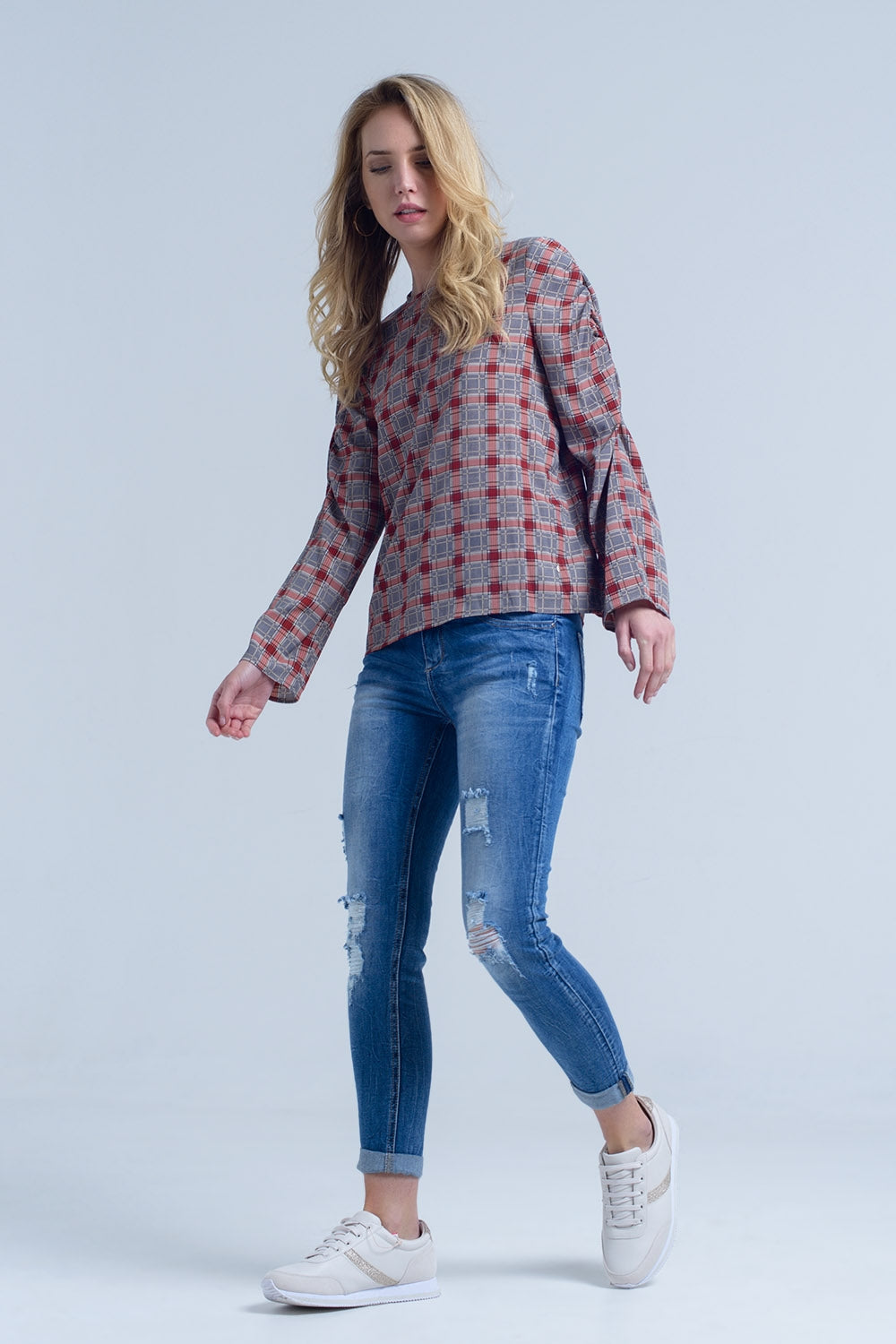 Bordeaux top with check print