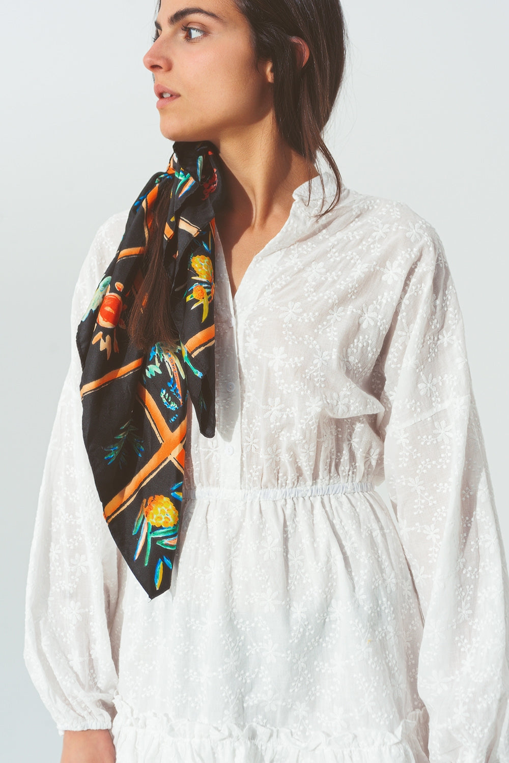 Length: Mini length. Subcategory: Dress. Collar: V-neck neckline. Sleeves: Long Sleeves. Fit: Standard fit. Style: Romantic. Detail: Button detail. Zipper: Button placket. Seam: Elasticated sleeves. Product details: Tiered skirt . Waist: Elastic waist. runs true to size. S.