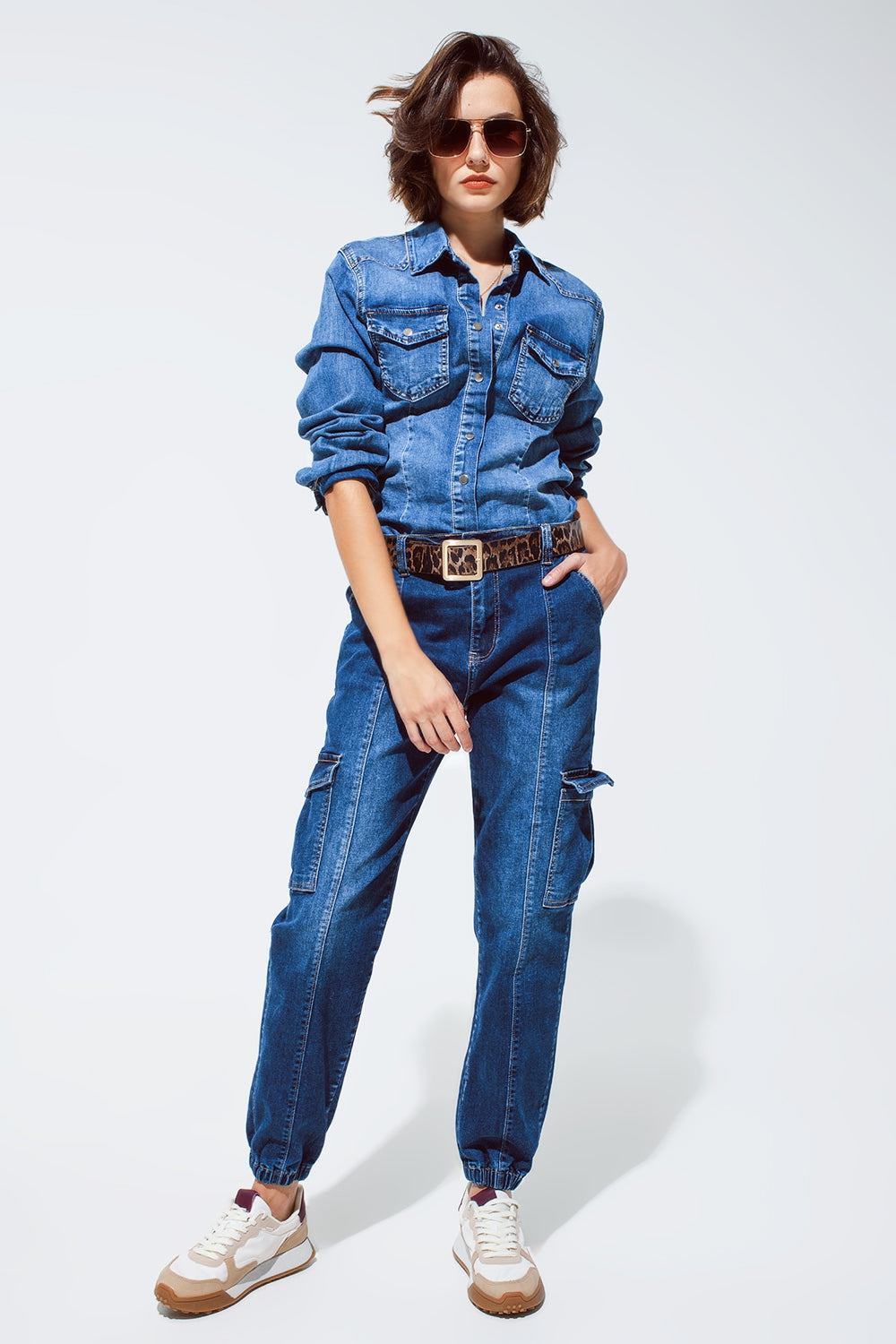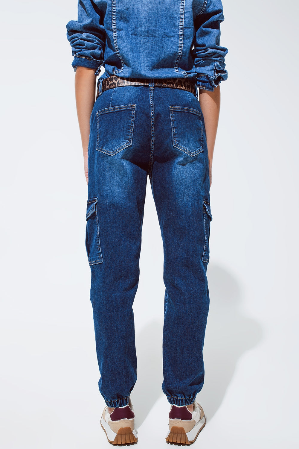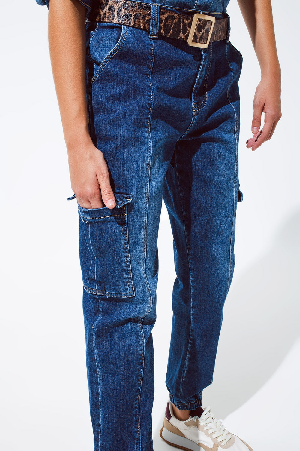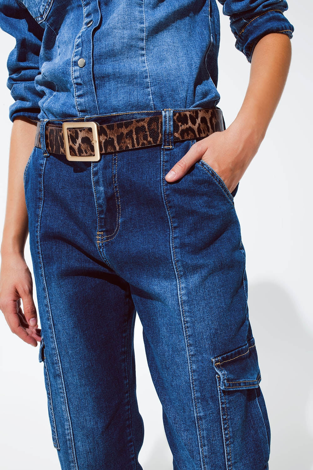 Cargo Style Jeans with Seam Down the Front in Medium Wash