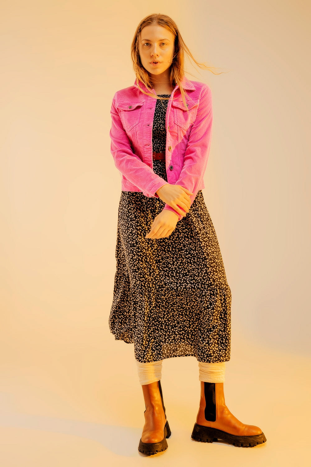 Length: Cropped length. Subcategory: Denim jacket. Collar: Wide collar neckline. Sleeves: Long Sleeves. Fit: Bodycon fit. Style: Daily. Detail: Button cuffs. Fabric: Corduroy. Pockets: Button chest pockets. Zipper: Button placket. Product details: Functional pockets. runs small. S.