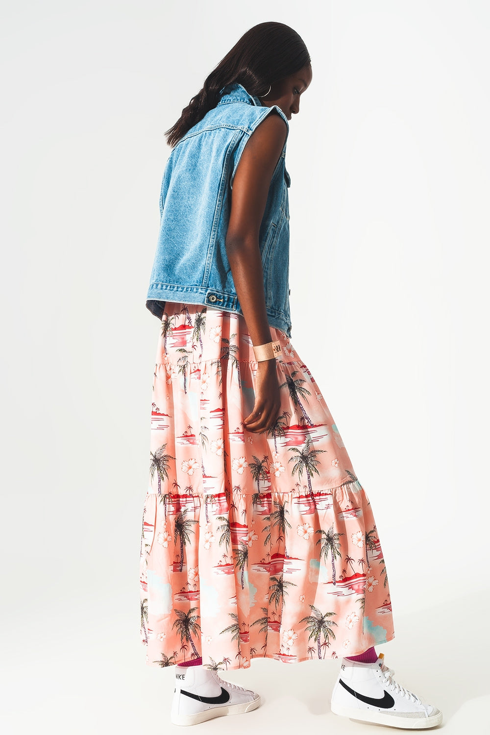 cotton sleeveless denim jacket in 70s blue