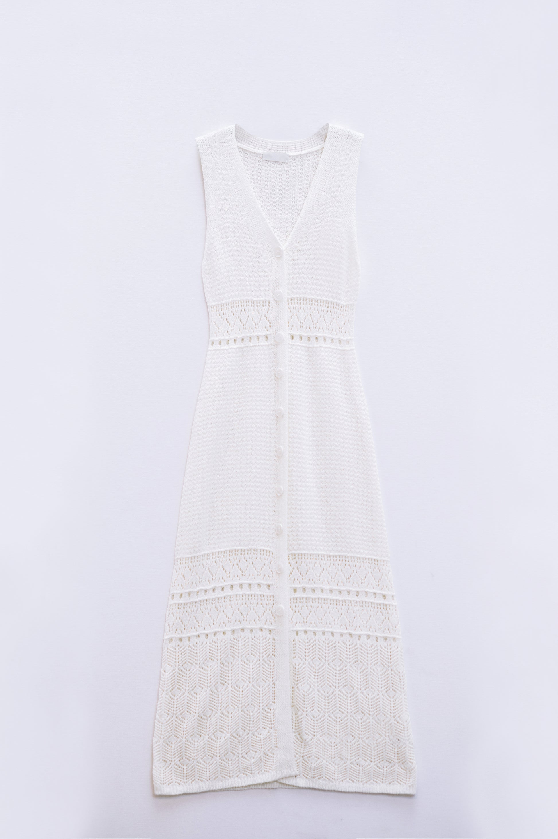 Length: Maxi length. Subcategory: Dress. Collar: V-neck neckline. Sleeves: Sleeveless style. Fit: Standard fit. Style: Boho. Fabric: Crochet. Zipper: Button placket. runs true to size. U.