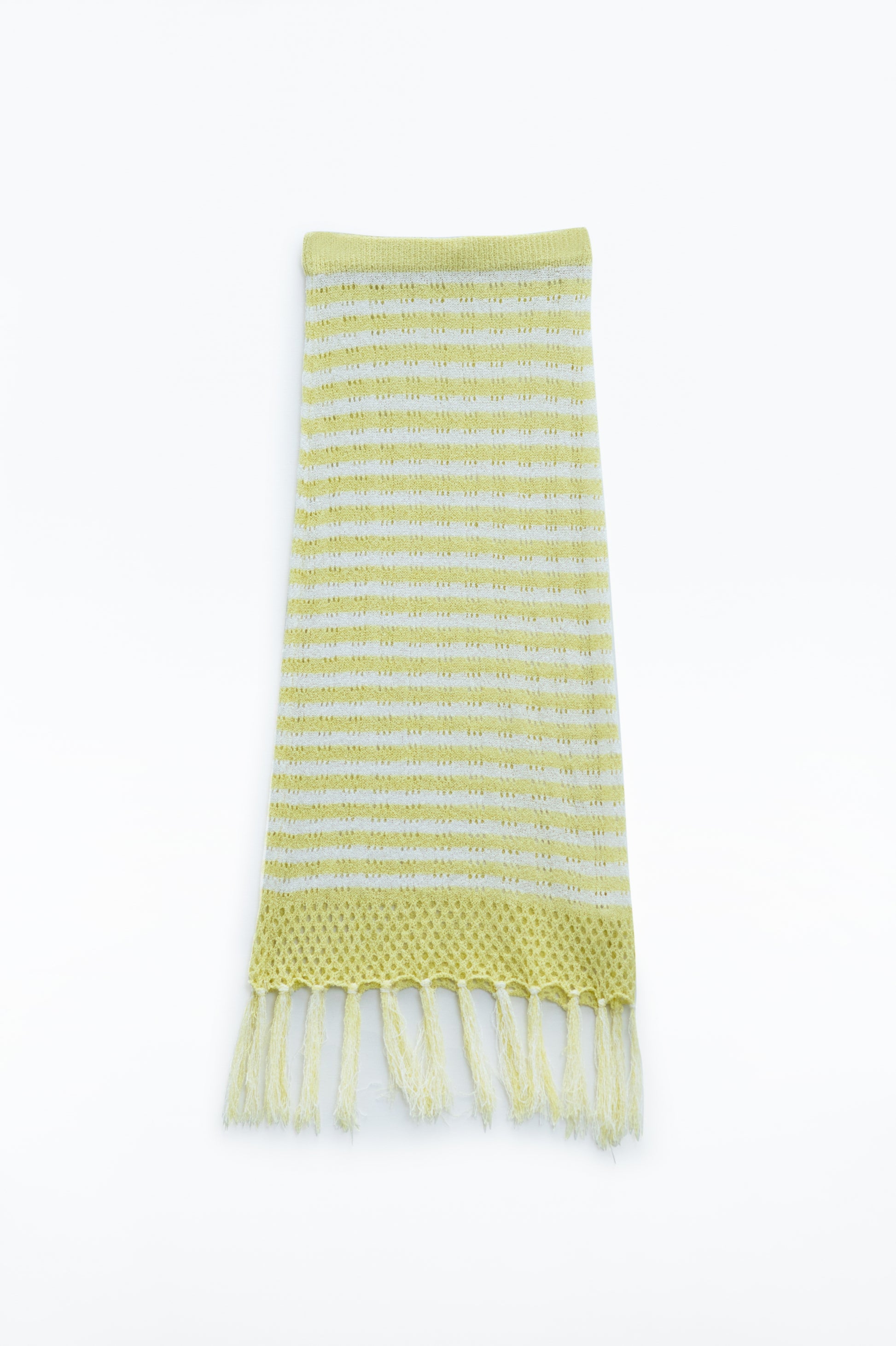Midi Crochet White Skirt With Yellow Stripes and Fringe Hem
