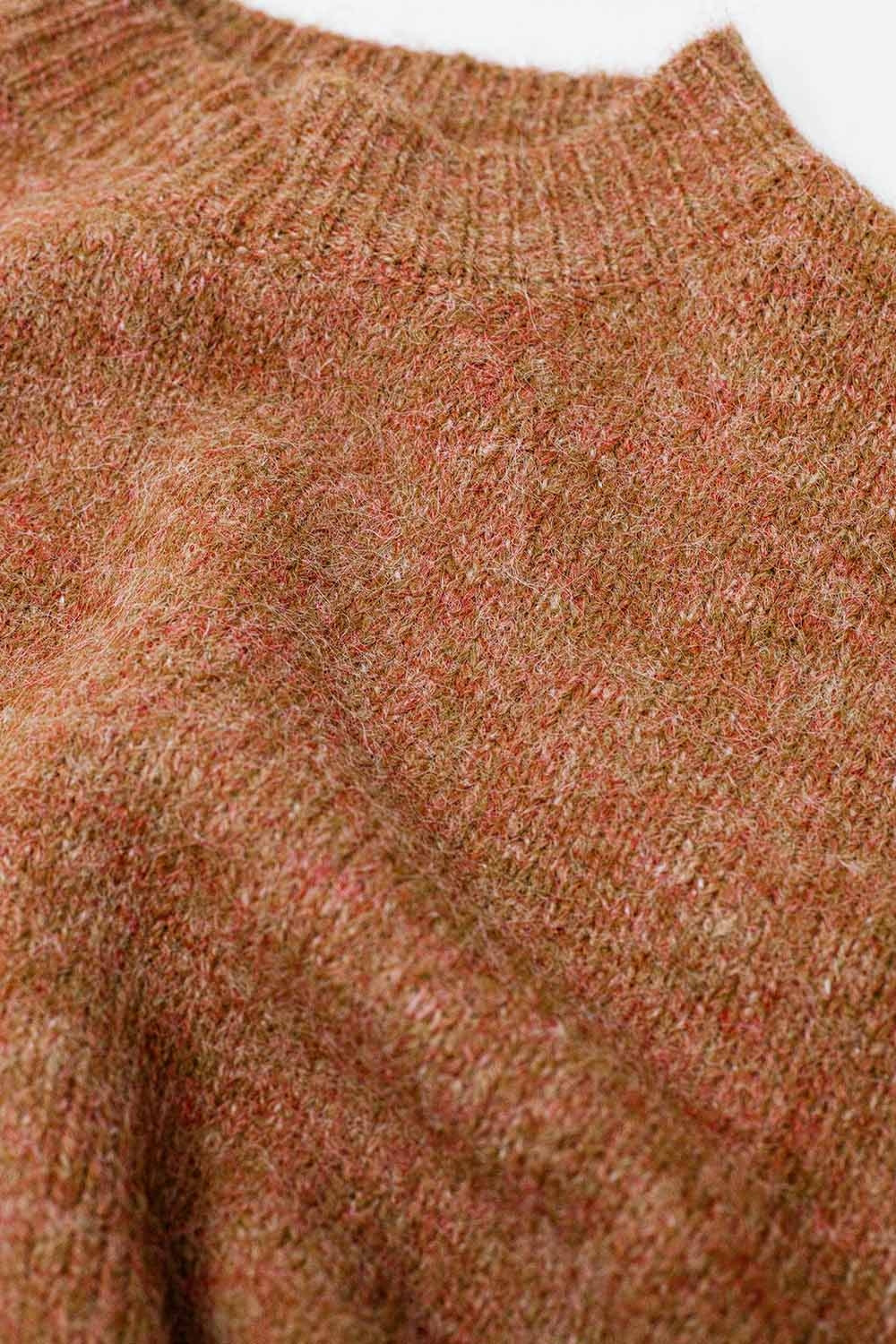 Relaxed sweater with french sleeve and crewneck in camel
