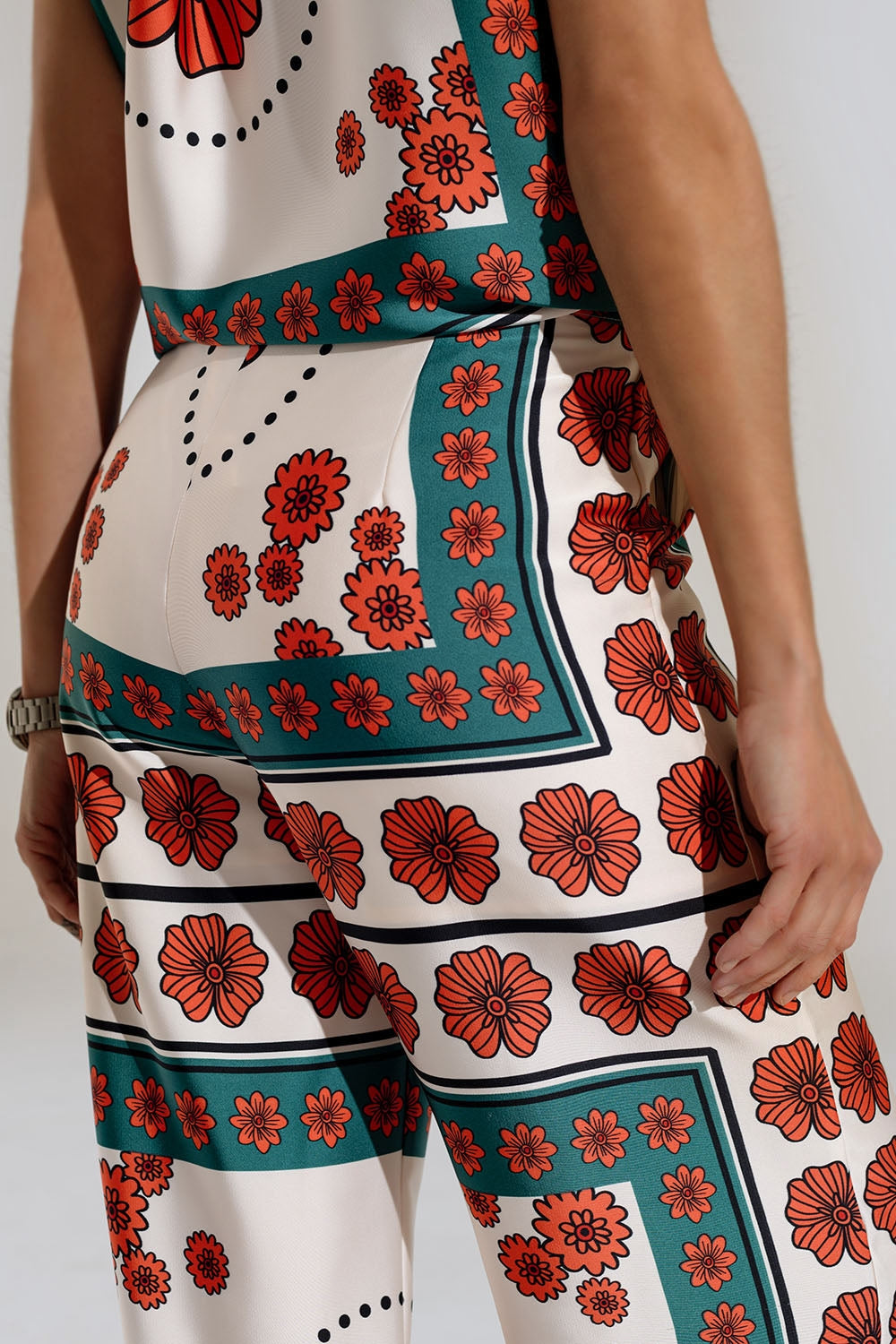 Subcategory: Pants. Print: Floral print. Fit: Relaxed fit. Leg: Wide leg. Style: Party. Fabric: Satin . Pockets: Side pockets . Zipper: Zip side. runs true to size. S.