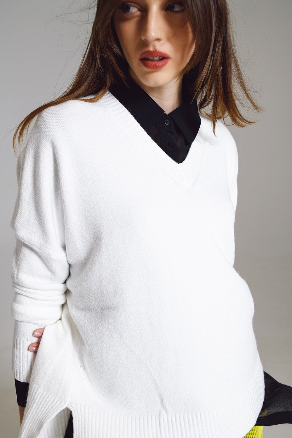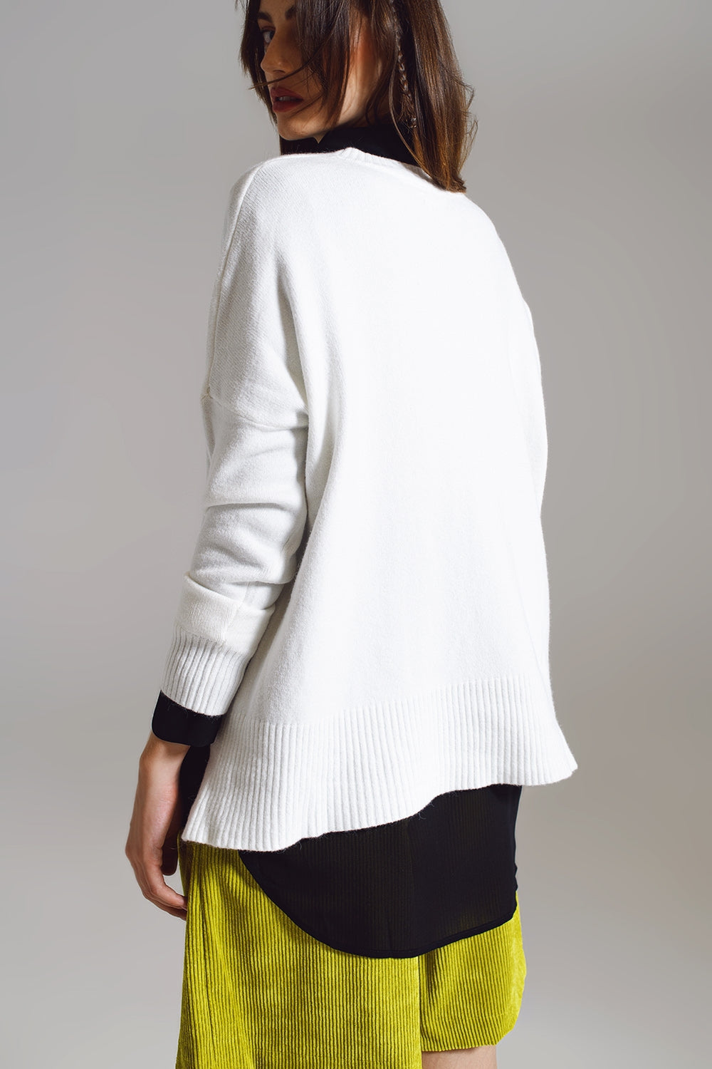Subcategory: Sweaters . Collar: Wide V-neck. Sleeves: Long Sleeves. Fit: Relaxed fit. Style: Comfy. Fabric: Soft knit. runs true to size. U.