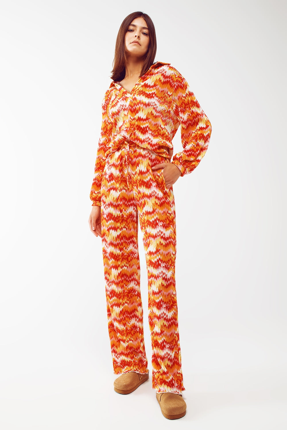Length: Maxi length. Subcategory: Pants. Print: Abstract print . Fit: Relaxed fit. Leg: Straight. Style: Daily. Fabric: Satin . Product details: Pleat detail. Waist: Elastic waist. runs true to size. S.