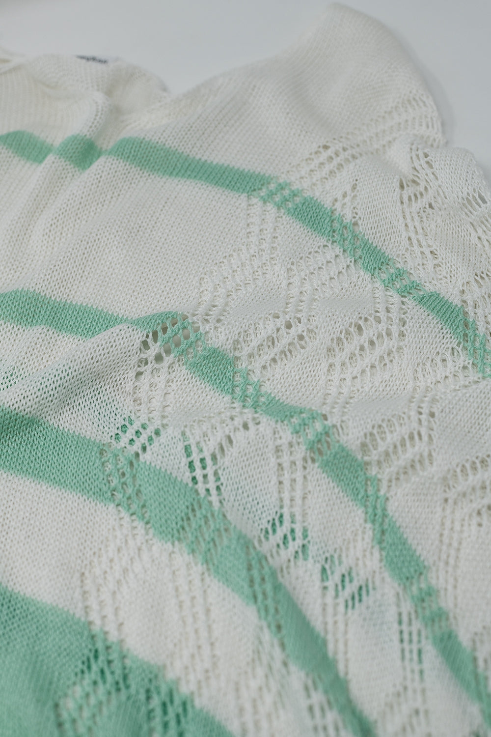 Subcategory: Sweatshirt . Collar: Boat neckline. Sleeves: Short Sleeves. Print: Stripe design. Fit: Relaxed fit. Style: Boho. Detail: Fringe trim . Fabric: Fine Knit. runs true to size. U.