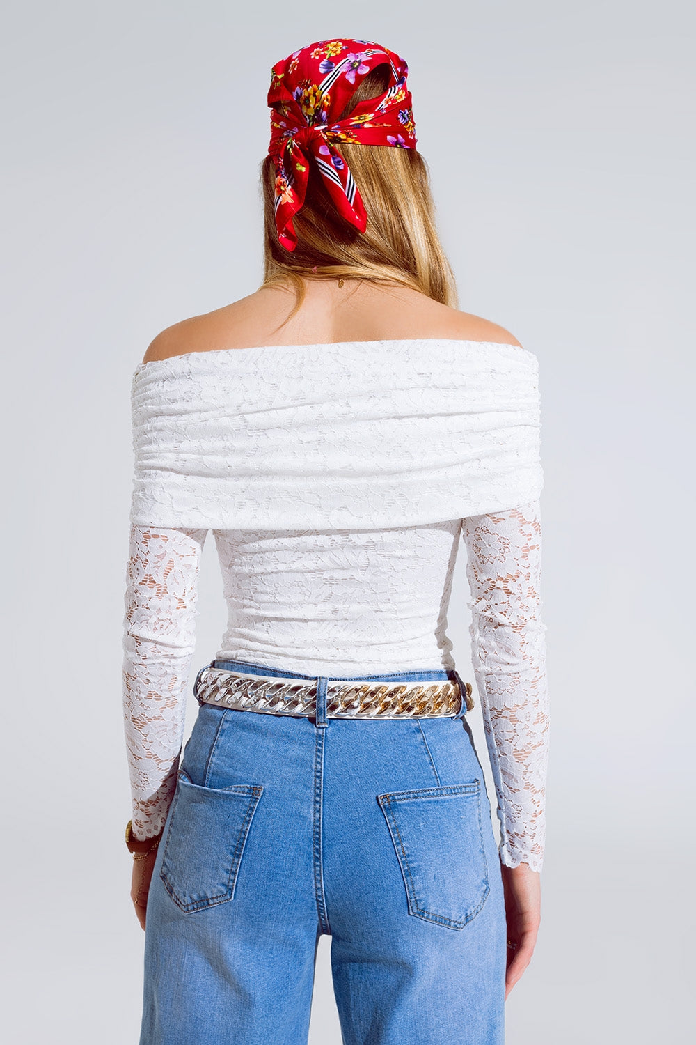 White Lace Bodycon Off The Shoulder Top