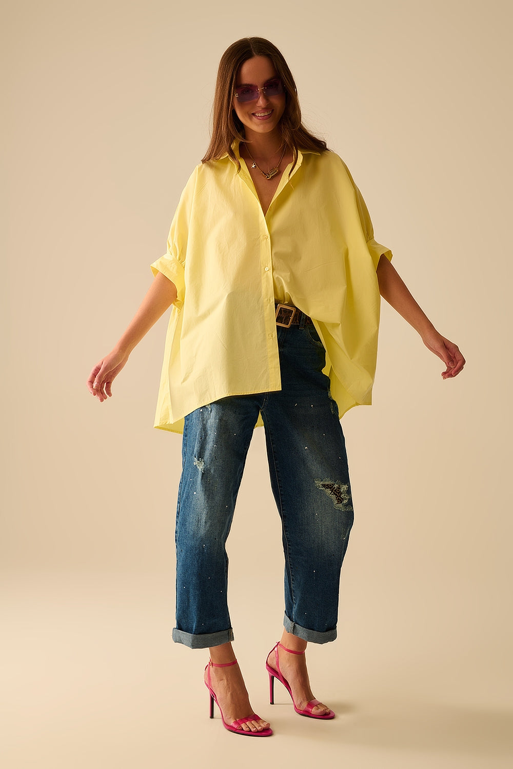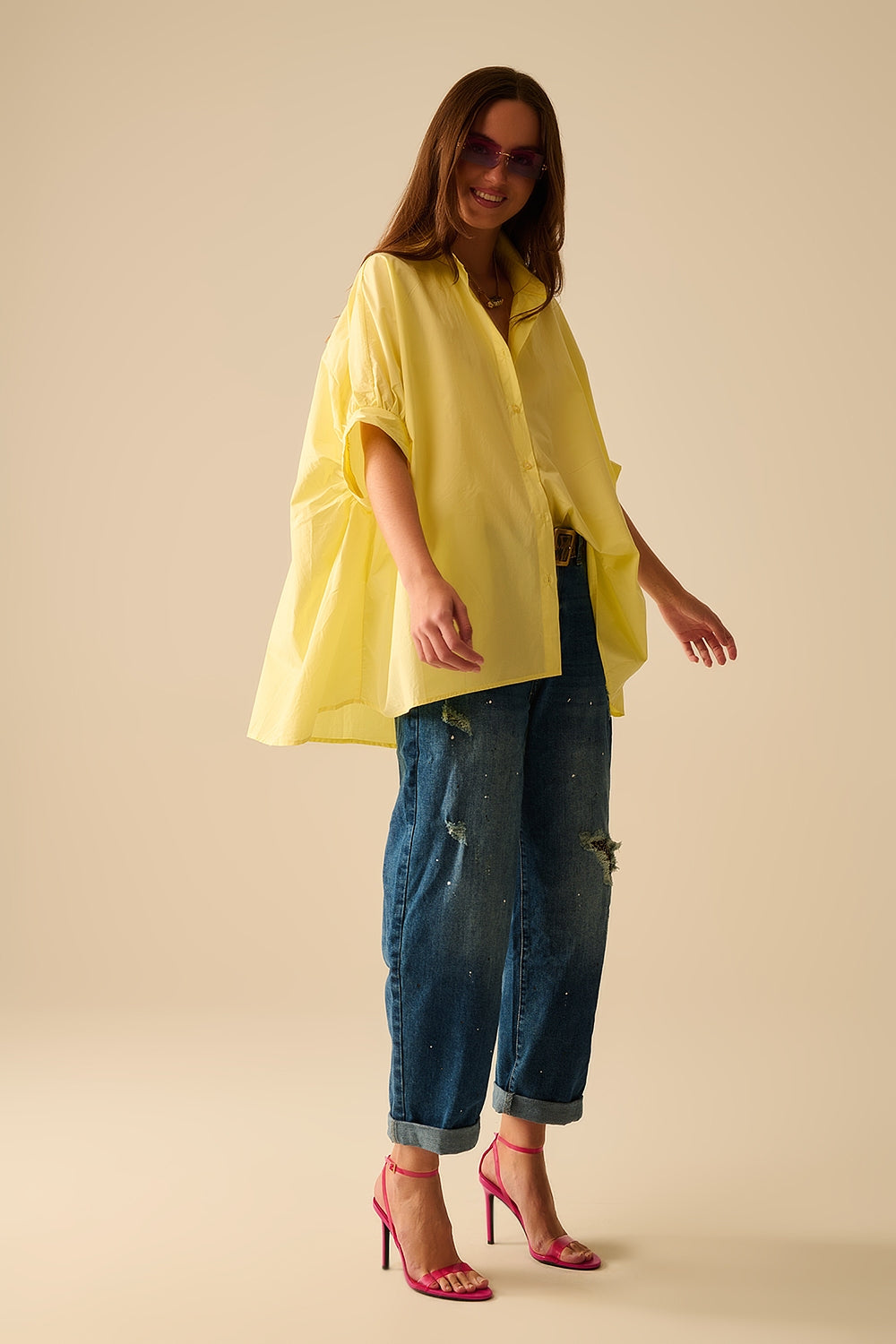 Subcategory: Shirts. Collar: Polo collar. Sleeves: 3/4 length sleeves. Fit: Oversized fit. Style: Daily. Fabric: Poplin. Zipper: Button placket. runs big. S.